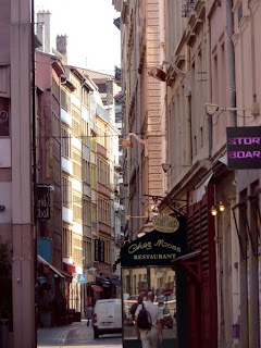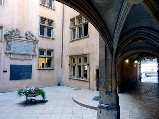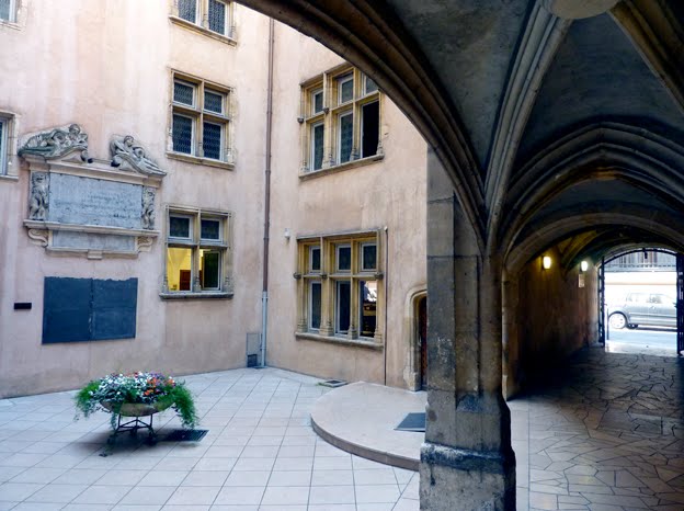 Clichés : À Lyon, 1) La rue Mercière aujourd’hui ; 2) Cour intérieure du Musée de l’imprimerie ; 3) Une des salles de présentation (clichés F. Barbier).