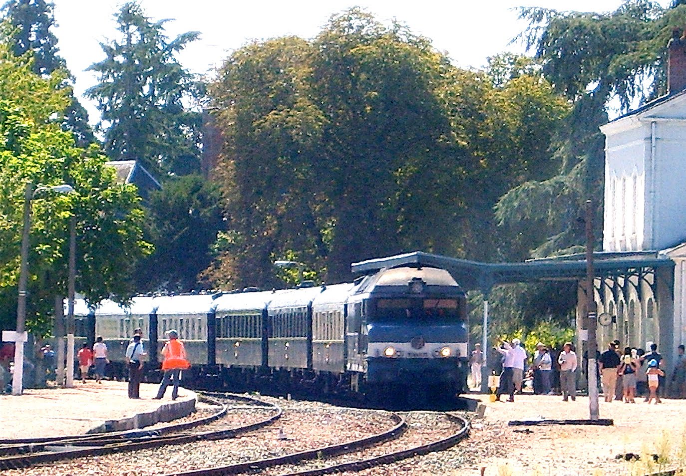 En effet, dans un autre billet (en date du 27 juillet), nous attirions l'attention sur le lien qui existe entre le train et le livre. Ce n'est pas en descendant du Transsibérien que nous pourrions dire autre chose: le voyage au long cours, dans un monde abrité et plus ou moins inaccessible (le train en route), un ou plusieurs jours durant, donne en effet l'occasion de conduire ou de reprendre des lectures elles-mêmes au long cours et que l'urgence de la vie quotidienne empêche parfois de mener à leur terme. Les organisateurs de "La Forêt des livres" mettent aussi, à leur manière, ce rapport en évidence, en faisant venir depuis 2009 leurs invités parisiens dans un train extraordinaire, une rame historique de la Compagnie des wagons-lits (avec Pullmans et voitures restaurants) qui circule pour l'occasion de Paris à Loches, via Orléans et Tours. De sorte que, aujourd'hui à Loches et à Chanceaux, l'amateur de livres et l'amateur de trains sont pareillement comblés.