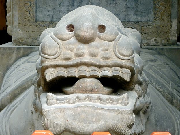 Un certain nombre de ces stèles sont portées par des effigies de tortues, l’animal cosmique par excellence (parce qu’il associe la figure ronde du ciel, avec sa carapace, et la figure carrée de la terre, avec son corps proprement dit (voir cliché).