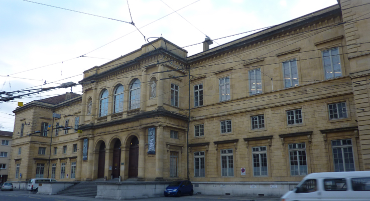 Cliché: façade de la Bibliothèque publique et universitaire (BPU)  de Neuchâtel (Suisse), 2010 (cliché FB). Sur l'histoire de la BPU