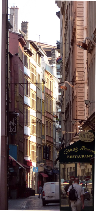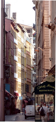 Cliché: à Lyon, l'entrée de la rue Mercière, artère traditionnelle de la librairie (cliché FB).