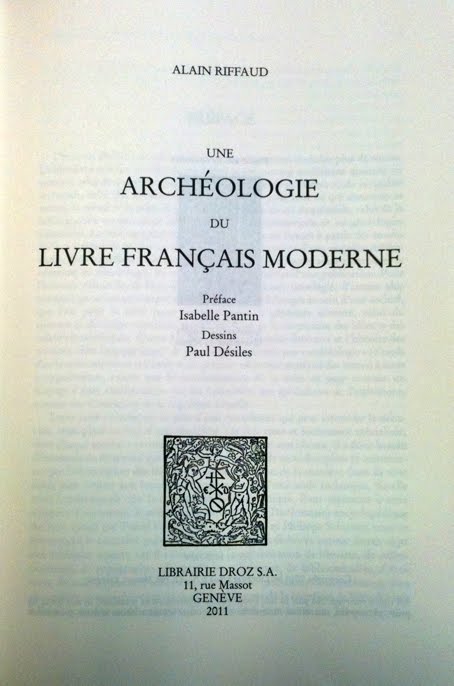 Alain Riffaud, Une Archéologie du livre français moderne, préf. Isabelle Pantin, Genève, Librairie Droz, 2011.