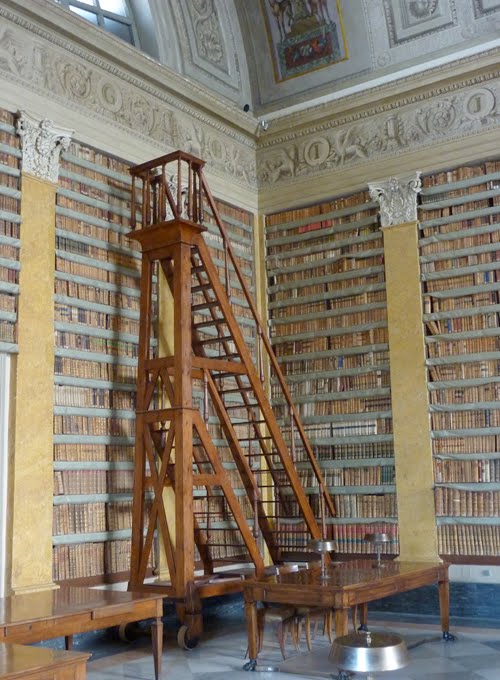 La chose est évidente, le cerveau n’ayant pas la capacité de stocker les masses de données conservées dans les bibliothèques ou dans les mémoires informatiques. Et nous ne sommes pas les premiers à être fascinés: la masse même des volumes a pareillement fasciné ceux qui nous ont précédés et qui leur ont élevé de véritables cathédrales destinées aussi à faire impression sur le visiteur (cliché: la Palatina de Parme en cathédrale de livres).