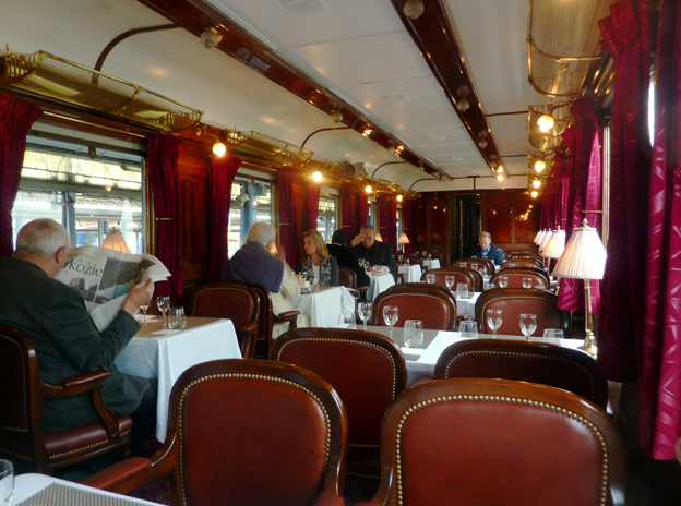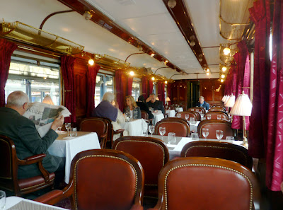 Le train est somptueux: pullmans et anciens wagons- restaurants, superbement restaurés et dont certains sont inscrits à l'inventaire des monuments historiques. L’organisation, précise et efficace, reste discrète, ce qui est bien agréable. Chacun a une voiture désignée (bien sûr, le choix dépend en partie de la qualité de l’hôte), mais les places sont libres (même si l’amitié est présente, ou la sympathie, on ne s’assied pas toujours non plus par hasard ici ou là).
