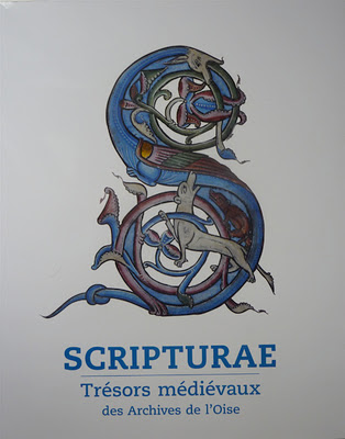 L’amateur d’histoire du livre relève la présence de plusieurs pièces réellement exceptionnelles, et souvent top peu connues: un ensemble de remarquables tablettes de cire appartenant à la ville de Senlis (cliché 1), mais aussi le «livre enchaîné» de cette même ville (cliché 2. Il s'agit du cartulaire municipal), sans oublier le somptueux Évangéliaire de Morienval, ses peintures et sa reliure (conservé à Noyon: cliché 3). il faudrait citer pourtant encore la charte de la commune de Senlis (1173-1174), le cartulaire du chapitre cathédral de Noyon (qualifié de «Plus riche manuscrit des Archives de l'Oise»), et nombre d'autres pièces non seulement spectaculaires, mais aussi très bien mises en valeur par la scénographie de l'exposition. Ajoutons que plusieurs conférences publiques accompagnent la manifestation, par ex. «Écrire sur l'argile, XVIe-XIXe siècles» le 16 février prochain à 18h30.
