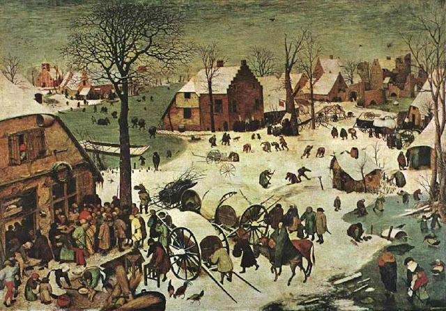Voici, d’abord, le célébrissime Dénombrement de Bethléem, mis en scène par Breughel dans un village de Flandre, en hiver (1556). Nulle part la moindre référence à l’écrit, si ce n’est avec ces officiers dépêchés de la «résidence» voisine, qui se sont installés à l’auberge (au premier plan à gauche de la scène) où, armés de leurs registres, ils font le recensement des habitants, de manière à lever les taxes. Le monde rural reste pratiquement tout en dehors de la civilisation écrite, laquelle apparaît, au contraire, comme le principal moyen d’enfermement, de contrôle et d’exploitation sur lequel les pouvoirs de la ville (ou, un temps, du château) appuient leur domination.