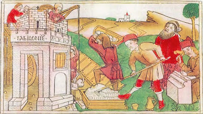 L'été, c'est à dire le plus souvent le 21 juin: la théorie des mois est largement présente dans l'iconographie, entre autres dans les livres manuscrits (une des séries les plus célèbres est naturellement celle des Très riches heures du duc de Berry) ou imprimés (par ex., le Compost ou Calendrier des bergers dont nous avons parlé ici même, ou encore les multiples livres d'Heures imprimés).